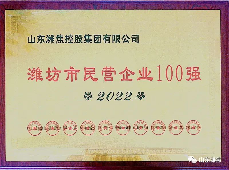 近日,由濰坊市工商聯(lián)、國有資產監(jiān)督管理委員會、工業(yè)和信息化局、農業(yè)農村局、商務局、稅務局、市場監(jiān)管局等機構共同發(fā)布2022濰坊民營企業(yè)100強,山東濰焦控股集團有限公司再次上榜,位列第8位!